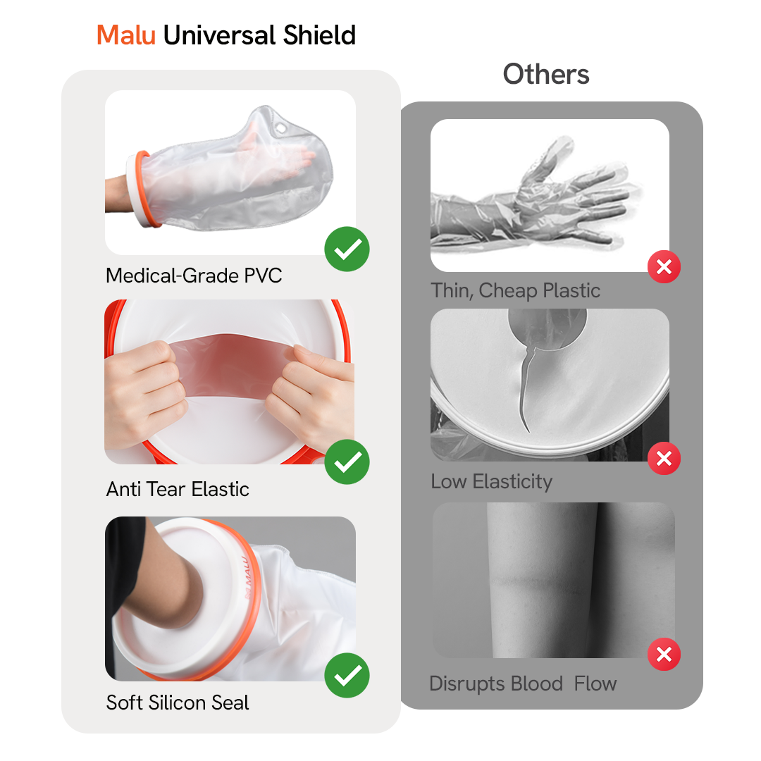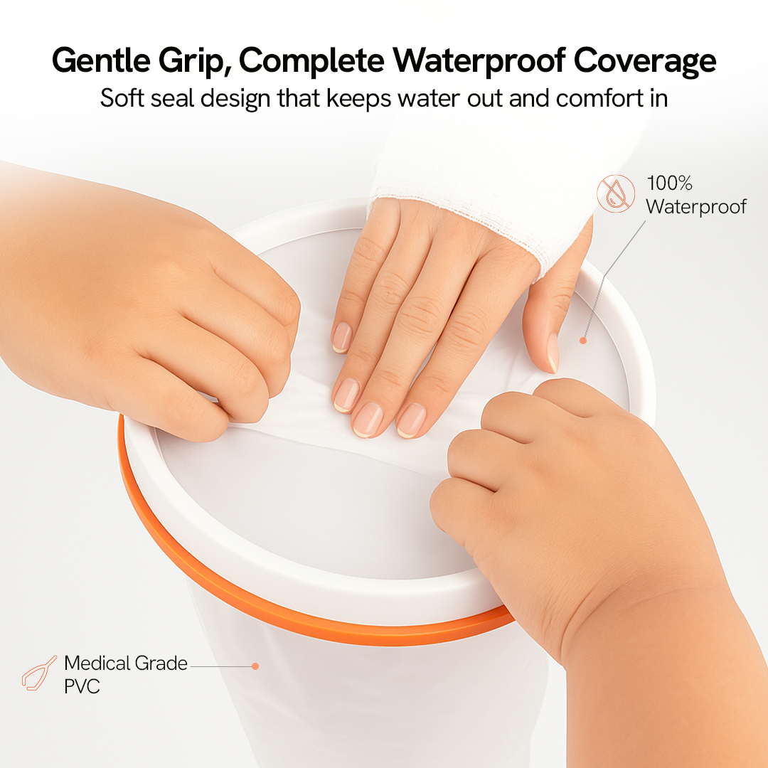 No, the stretch-seal design grips securely around the arm to prevent slipping during showers.