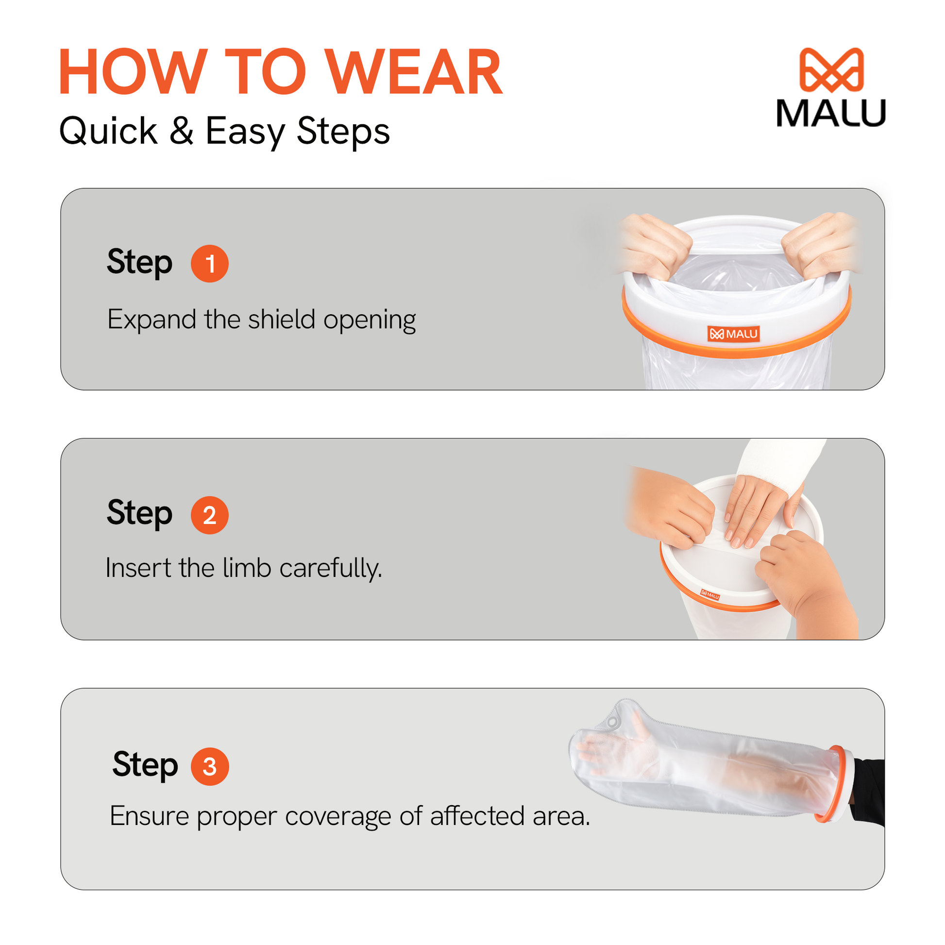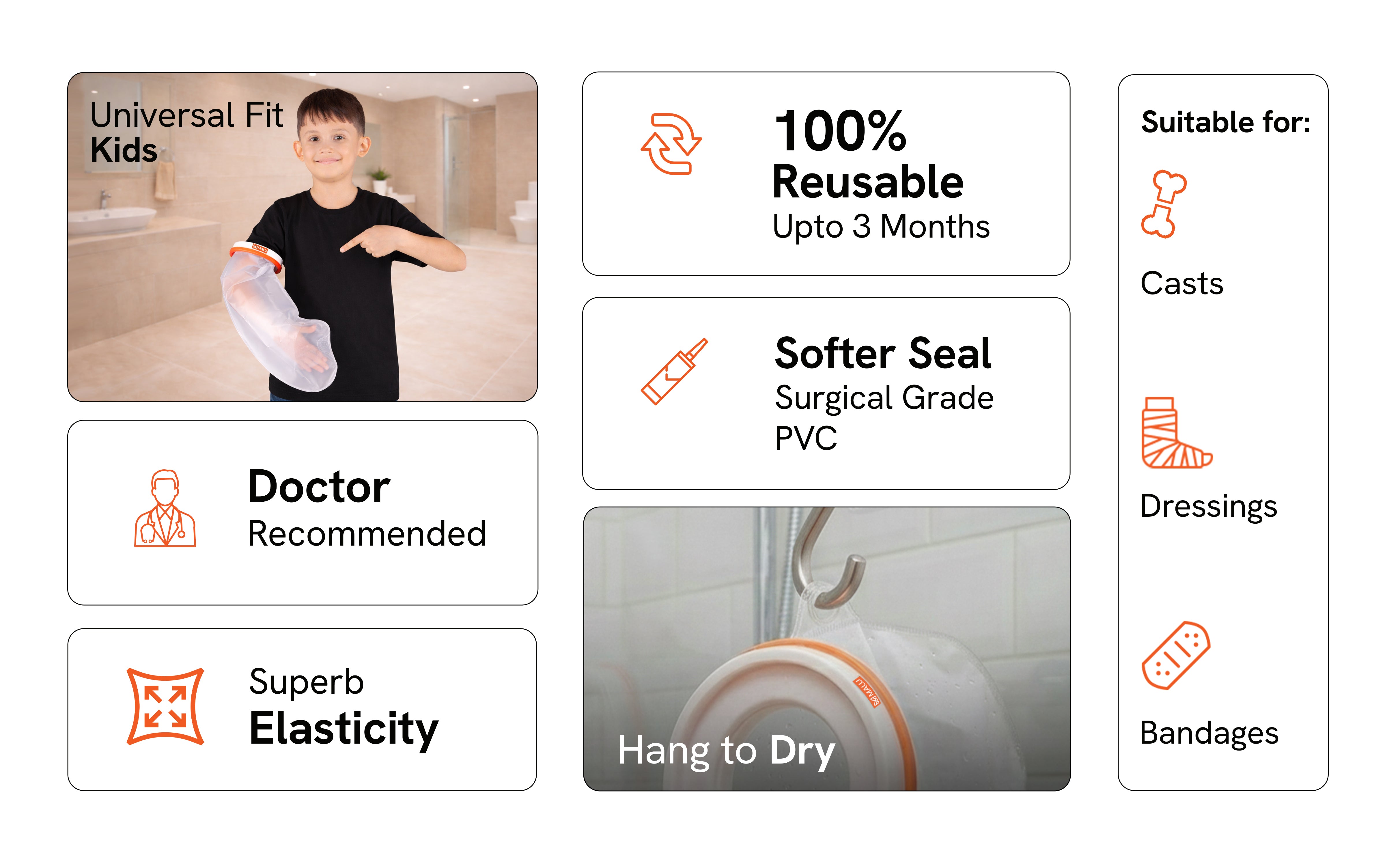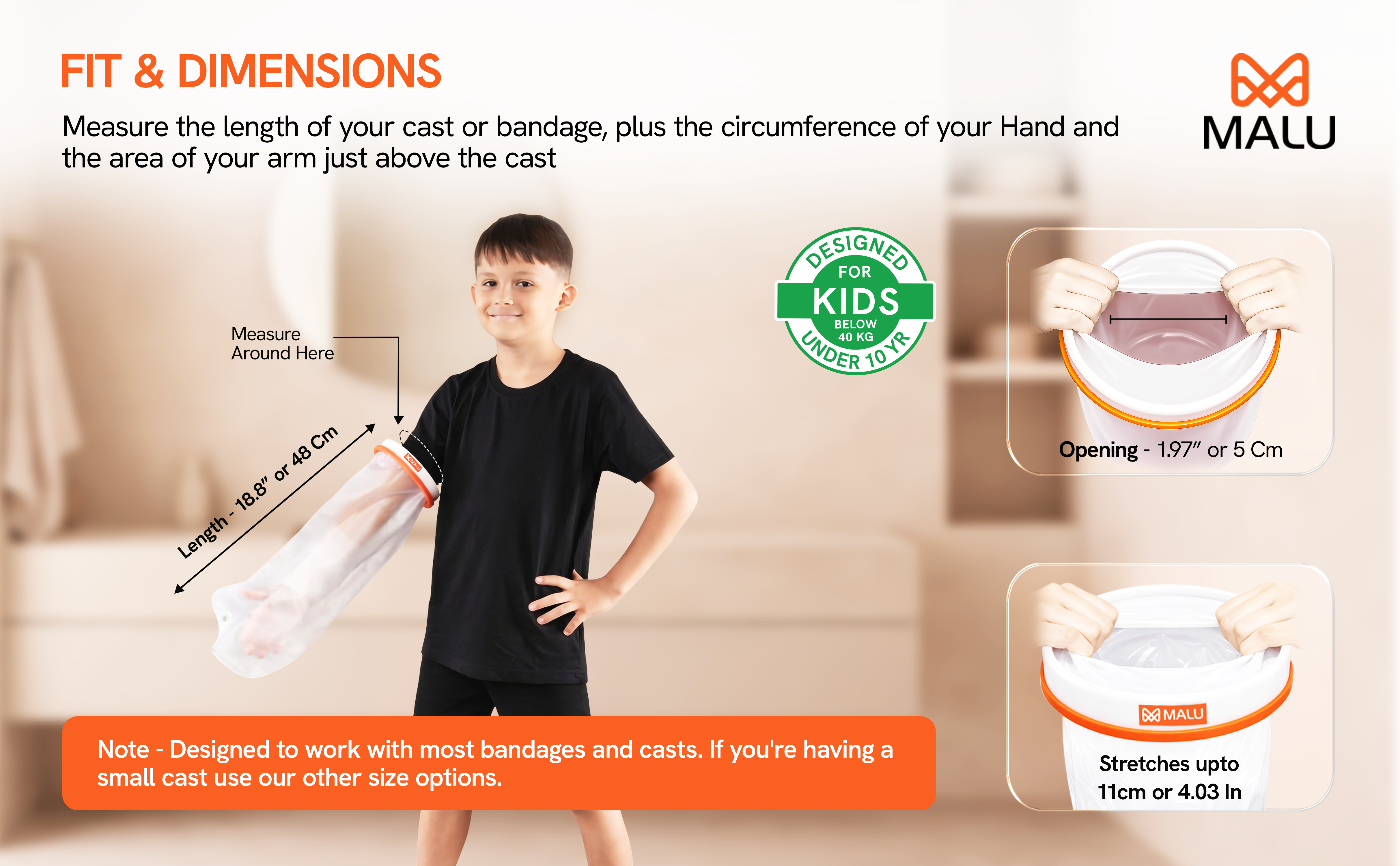 Keeps casts, bandages, wounds, and injuries dry during showers or baths.
